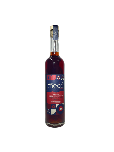 Our Cherry Bochet (Medd Bochet Ceirios) is a sweet and sour, cherry mead, balancing the sour cherry with sweet, slightly caramelised honey. It is juicy, fresh, and very quaffable!Â